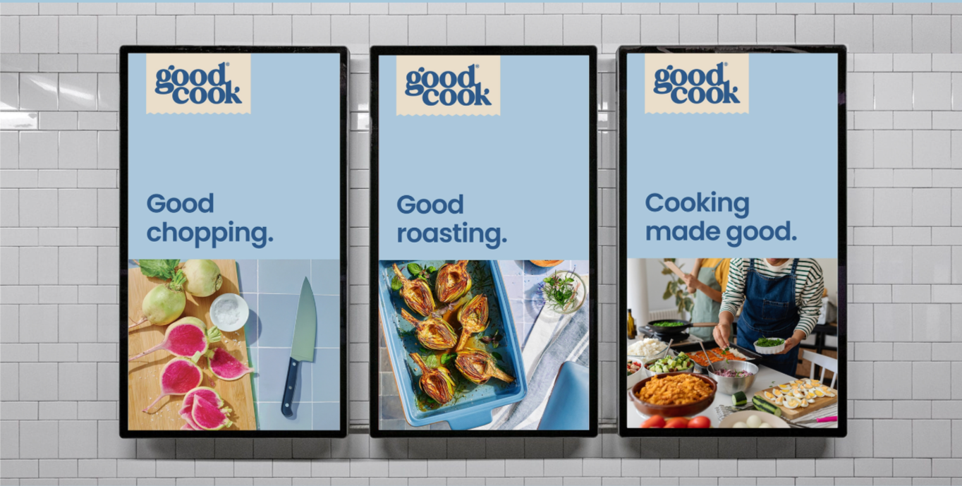 Partnering with brand design agency mrs&mr, we developed a new logo, look, tone of voice, energy and platform that repositioned GoodCook as a brand dedicated to enabling everyone to feel more comfortable in the kitchen.